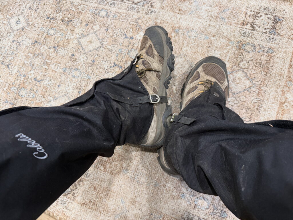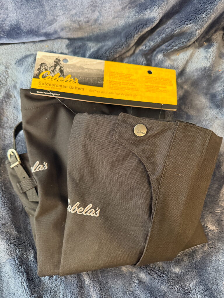 We hotfooted ourselves over to Cabela’s in Verdi, Nevada, and picked up a pair of leg gaiters. These are NOT cheap! Retail ran $69.99 so you know I really had to want them! https://www.cabelas.com/p/cabelas-outdoorsmen-leg-gaiters