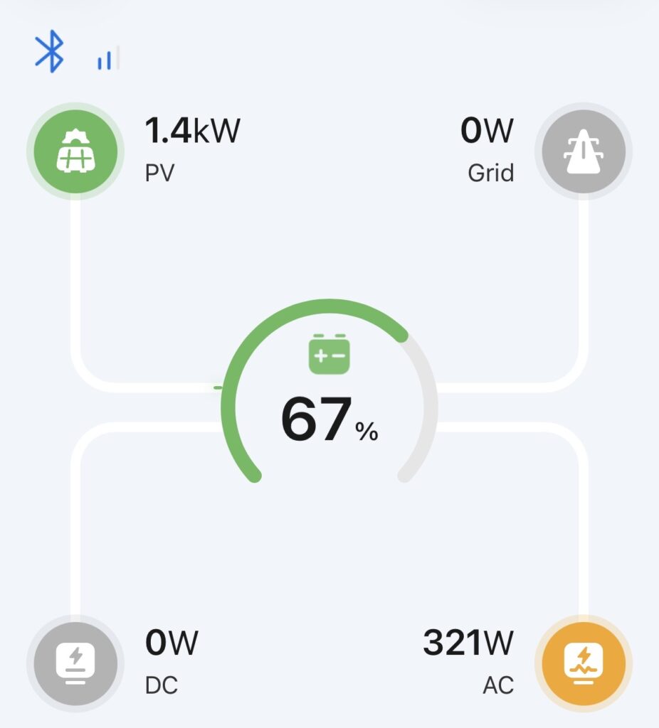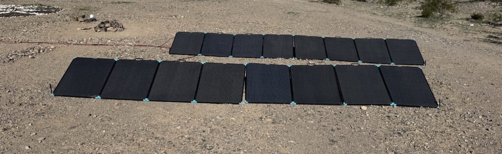 This is where it gets real. Renogy advertises 400W peak power. I purchased four of these units for a combined total of 1.6kW of maximum power under the most ideal of conditions. I expected perhaps 50% of advertised power and have been thrilled to regularly extract 1.4kW peak power. That’s a little below the advertised peak, but pretty typical for real-world performance. Remember, advertised wattage is usually achieved under ideal lab conditions.