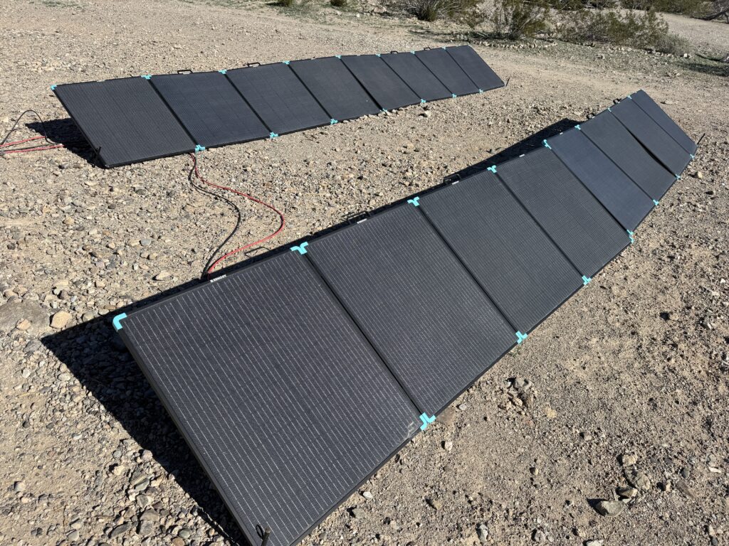 Seriously, this is one of the biggest selling points. Unzip the case, unfold the panels (it’s pretty intuitive), prop up the kickstands, and plug in your charge controller/power station. That’s it. I was powering up my Bluetti AC500 in under a minute.