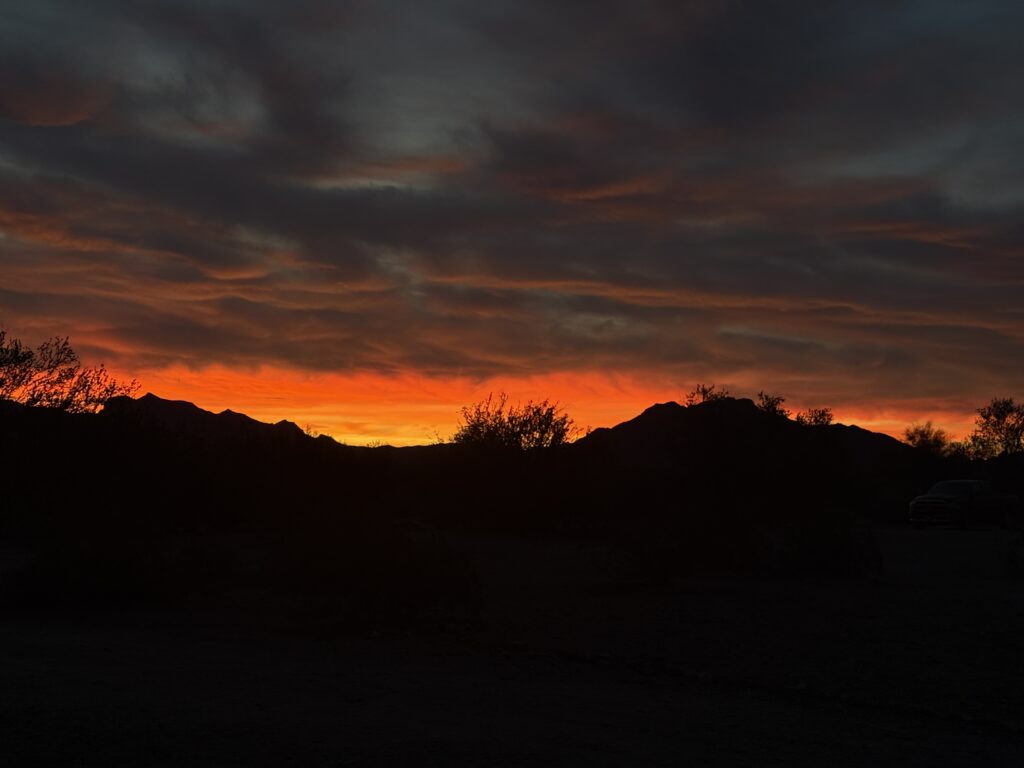 We’ll be keeping a close eye on our solar panels. They’re staked down but could easily become kites if we suffer failures.